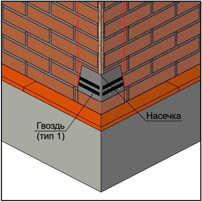 Устройство внутренних углов при помощи металлических уголков brick